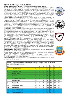 Bostik League South East Division (20 clubs) - League Table 2018-2019