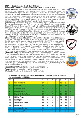 6-0, Nov 3 Phoenix Sports (a) 1-1, Nov 10 Hythe T (a) 1-1, Nov 17 East Grinstead T (h) 3-2, Nov