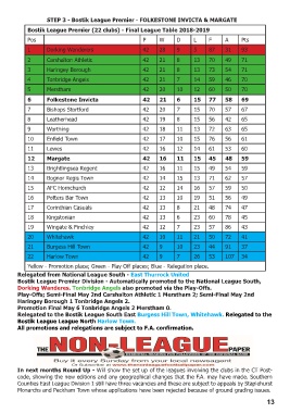 Bostik League Premier (22 clubs) - Final League Table 2018-2019