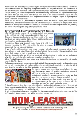 the paper. Perhaps because we have always been used to the structure of Non-League, we take