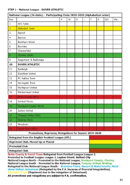 National League (24 clubs) - Participating Clubs 2019-2020 (Alphabetical order)