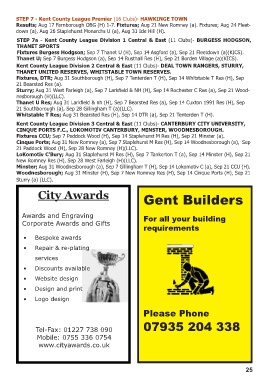 LoKomotiv C’Bury; Aug 31 Staplehurst M Res (H), Sep 7 Tankerton T (a), Sep 14 Minster (H), Sep 21