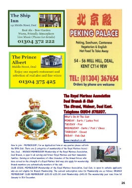 CLUB SOCIAL MEMBERSHIP.Membership of the Royal Marines Association, Deal Club, is open to suitable applicants