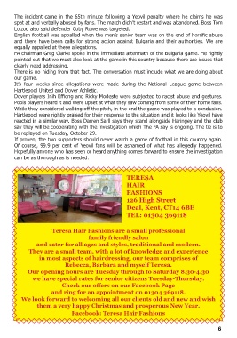 spat at and verbally abused by fans. The match didn’t restart and was abandoned. Boss Tom