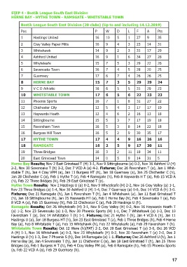Hastings U (h) 1-3, Dec 7 Phoenix S (h), Dec 14 Ramsgate (a) 1-1. Fixtures; Dec 26 Ashford U (h), Jan 1