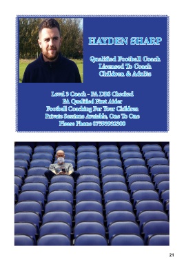HAYDEN SHARP Qualified Football Coach Licensed To Coach Children & Adults Level 3 Coach - FA DBS Checked FA Qualified First Aider Football Coaching For Your Children Private Sessions Avaiable, One To One Please Phone 07593932300 20 21