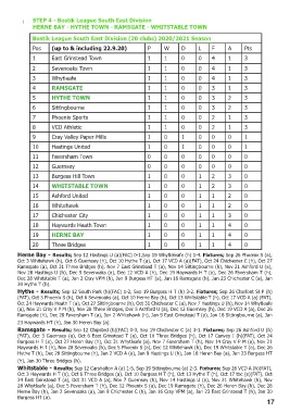 Oct 3 Whitehawk (h), Oct 6 Guernsey (h), Oct 10 Hythe T (a), Oct 17 VCD A (a)(FAT), Oct 24 Chichester C (h), Oct 27