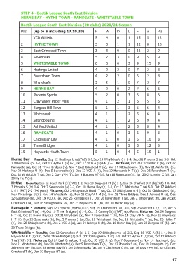 3 Whitehawk (h) 3-1, Oct 10 Hythe T (a) 0-1, Oct 17 VCD A (a)(FAT) 2-1. Fixtures; Oct 24 Chichester C (h), Oct 27