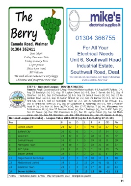 National League (24 clubs) - League Table 2018-2019 (up to & including 17.11.18)