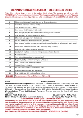 DENNIS’S BRAINBASHER - DECEMBER 2018