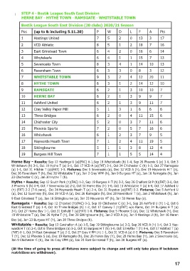 wards H T (a) 2-0, Oct 6 Three Bridges (a) 3-2, Oct 10 Burgess H T (h) 1-0, Oct 13 Hythe T (h) 0-6, Oct 17 Ashford T (a)