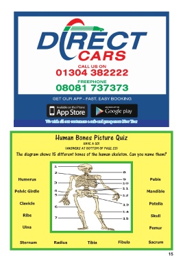 The diagram shows 15 different bones of the human skeleton. Can you name them?