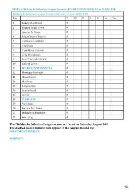Pitching In Isthmian League Premier (22 clubs) Season 2021/2022