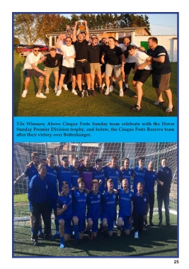 Tile Winners; Above Cinque Ports Sunday team celebrate with the Dover Sunday Premier Division trophy, and below, the Cinque Ports Reserve team after their victory over Betteshanger. 24 25