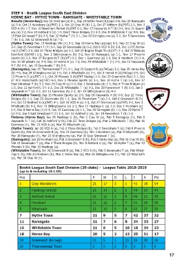 Bostik League South East Division (20 clubs) - League Table 2018-2019